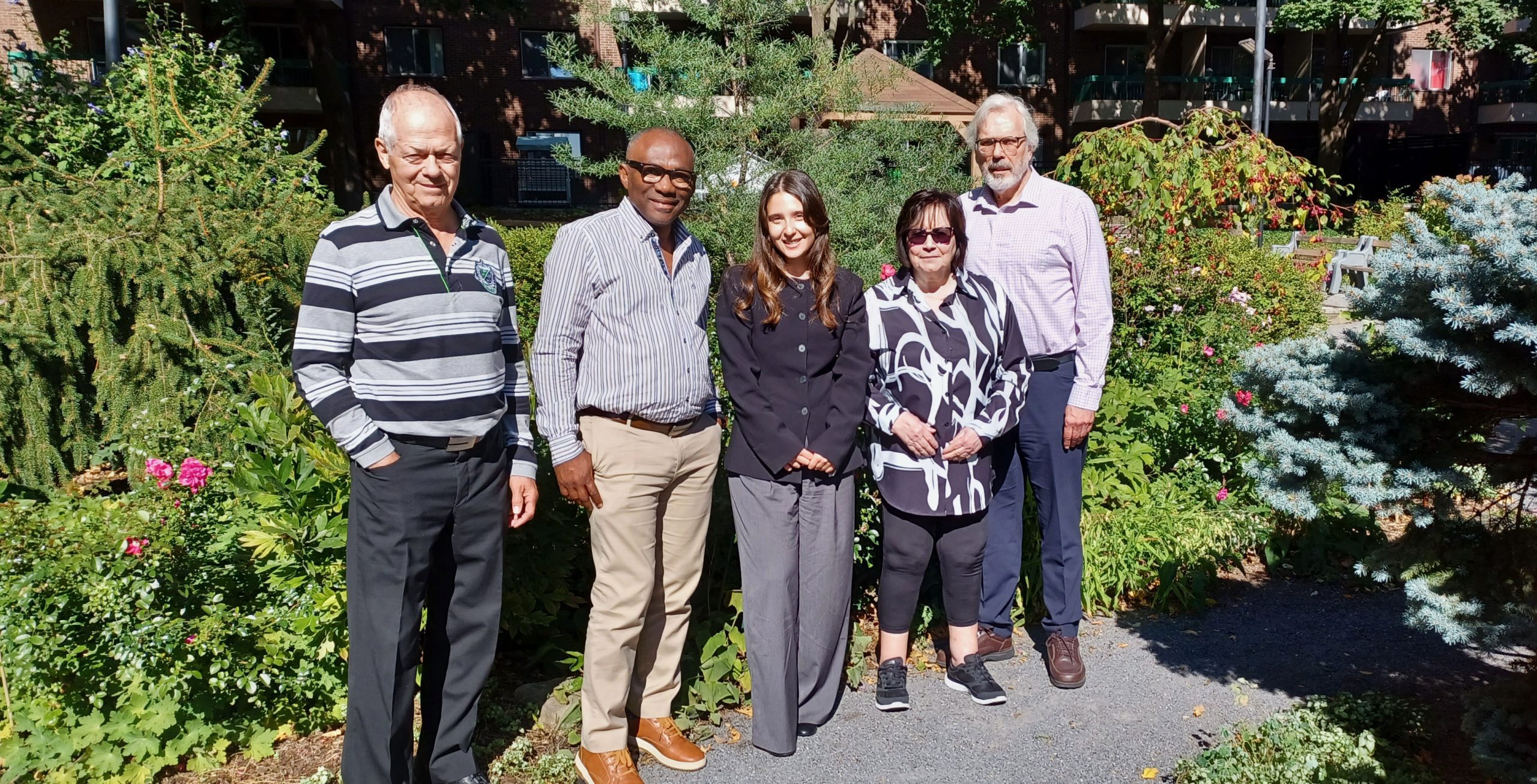 Au 2e rang : Gerry Lapointe, journalier – Mario Beauchesne, journalier – Gaétan Thomas, plombier – Francis Fraser, installateur de revêtement – Patricia Marcotte, jardinière – Jean-François Fournier, superviseur de la maintenance – Étienne Desbiens-Després, directeur des immeubles